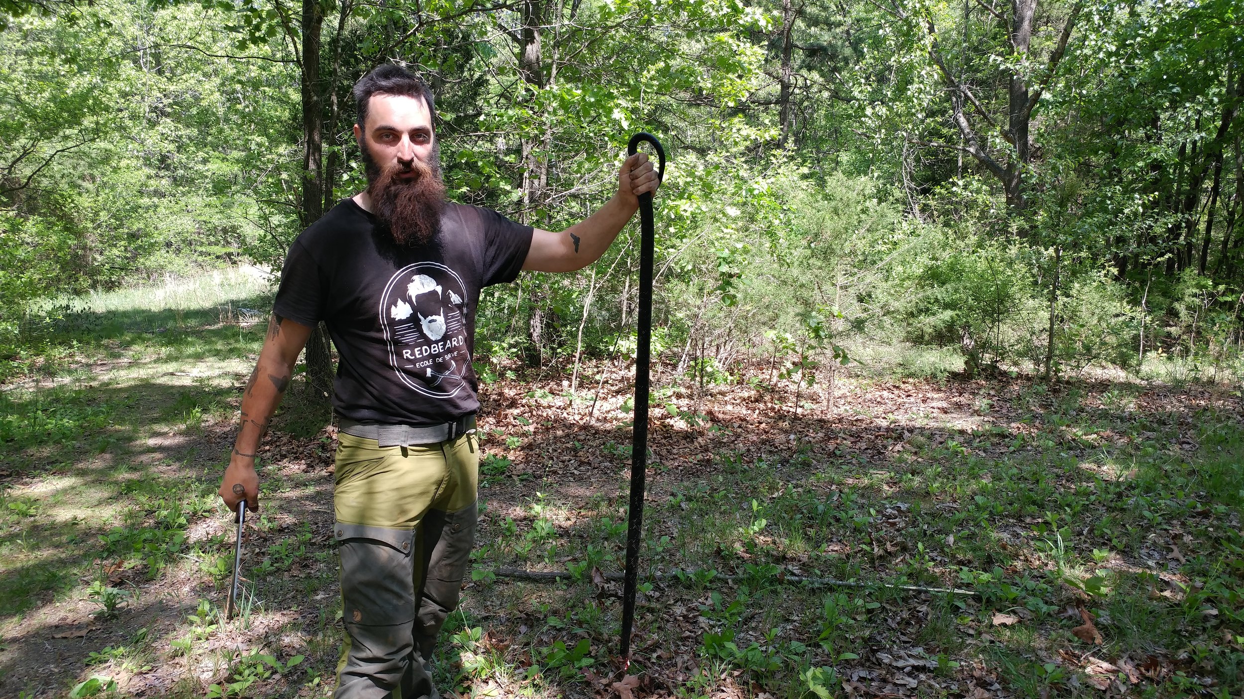 Au debut de mon aventure je suis tombé sur une vieille grille de camping abandonnée, rouillée mais solide. Posée sur des pierres au-dessus de mon feu de cèdre, elle m'a permis de faire cuire ce serpent comme un chef — ou du moins, comme un homme qui n'avait pas mangé depuis trop longtemps et à qui ça ne dérangeait pas du tout.